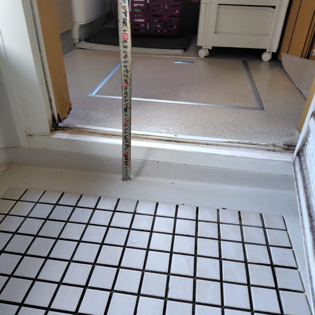 高い段差があった浴室入口を、床の高さを精密に調整してフラットなバリアフリー仕様に改修。同時にドアの有効開口も広げることで、スムーズな出入りを実現しました。ご家族が毎日安心して入浴できる、足元に優しい設計です。